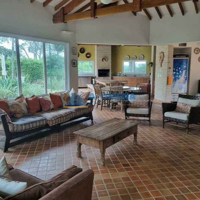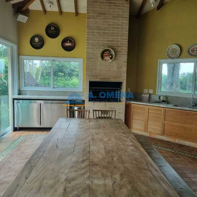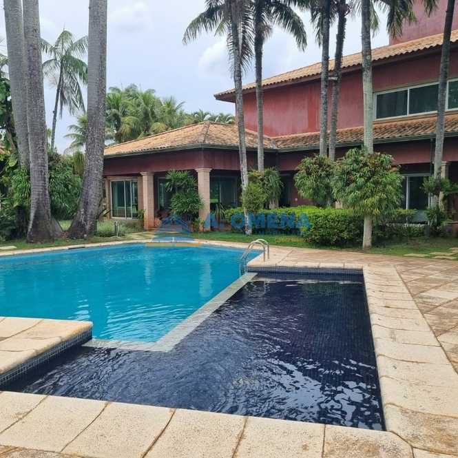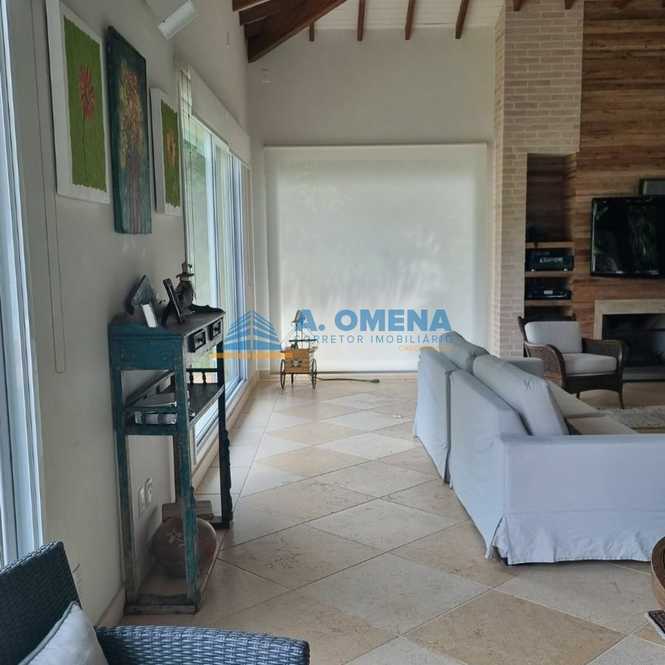 Magnífica casa em condomínio de altíssimo padrão, com 8 suítes, sendo o pavimento superior exclusivo para a suíte master, rica em armários planejados, roupeiro, ar condicionado, amplo living, lavabo, cozinha planejada, despensa, lavanderia, salão de jogos, espaço gourmet com churrasqueira, fogão à lenha e forno de pizza com 2 banheiros. Deslumbrante paisagismo, piscina com prainha, vestiário, playground, casa de bonecas, aquecimento solar, dependência para empregados, garagem coberta para 4 carros e demais vagas descobertas.