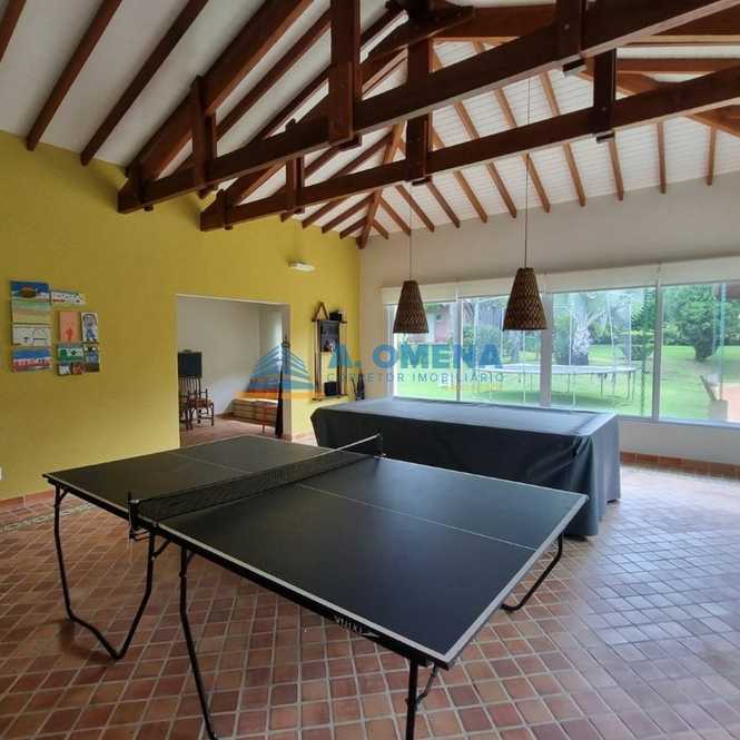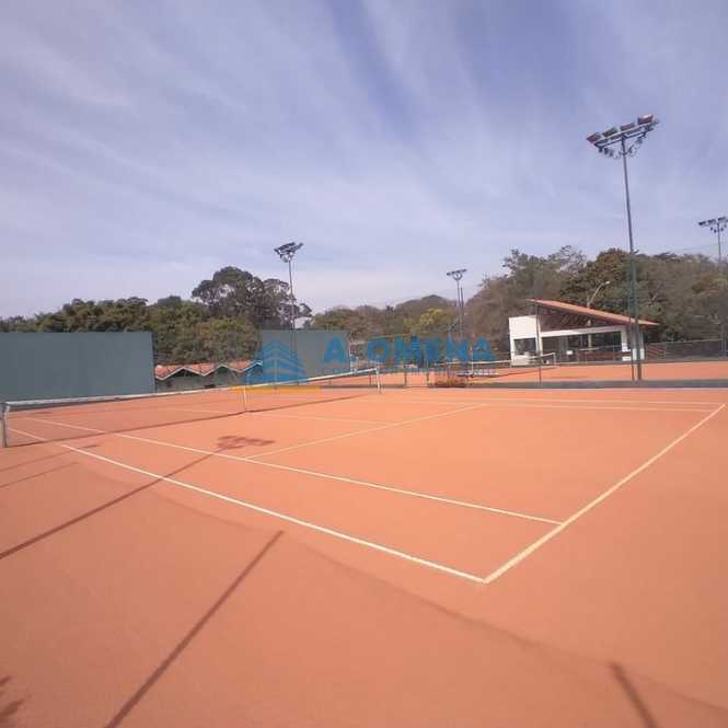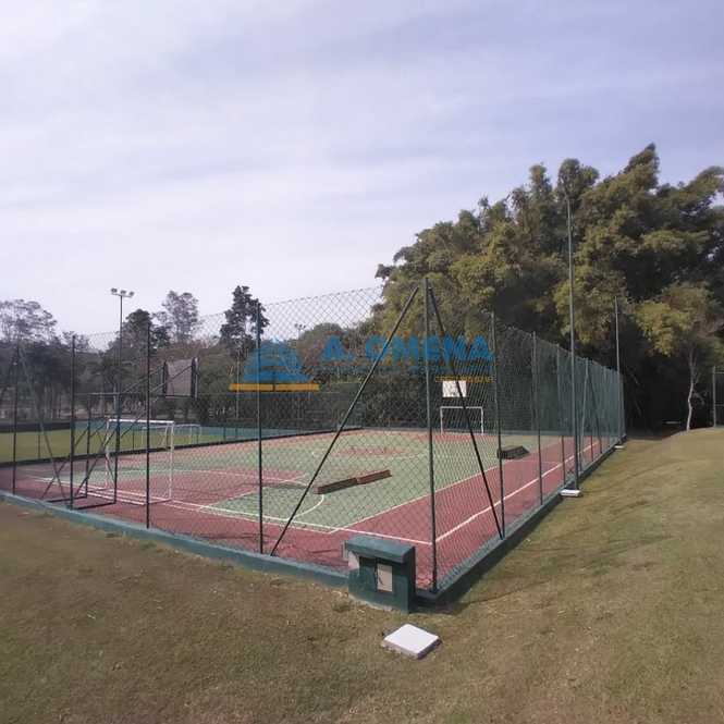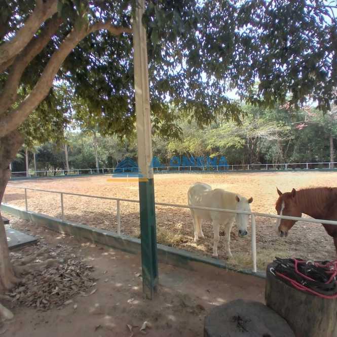 Condomínio cercado por extensa mata, com área de lazer completa com piscina, 2 salões de festas, quiosques, pista de caminhada, quadras de tênis, quadra poliesportiva, capela, lago e cocheira.