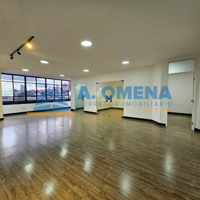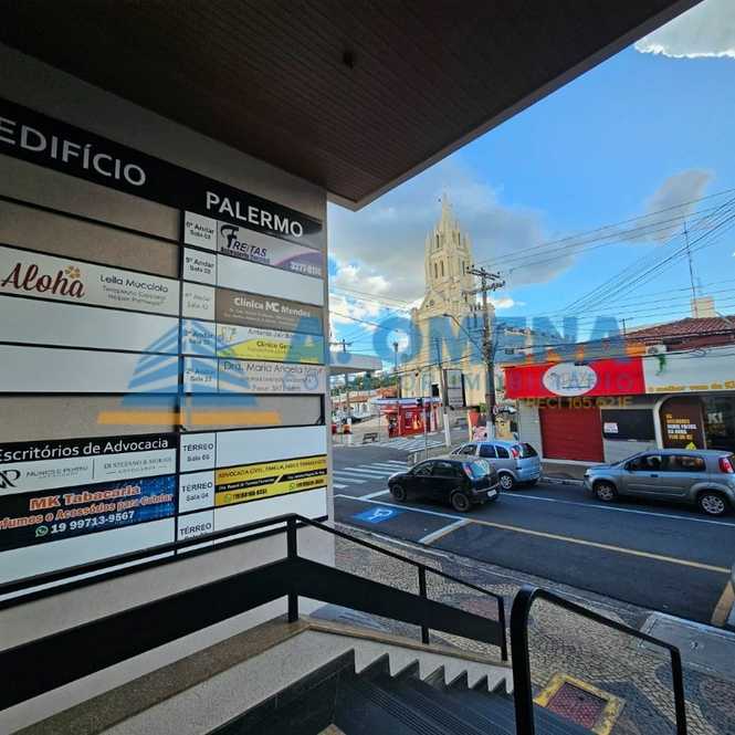 Ampla sala comercial com 104m², muita luz natural, na área central de Valinhos em rua de grande fluxo, piso porcelanato, 3 banheiros, mini copa, 02 espaços reservados para escritório, 1 vaga de garagem no sub-solo.
