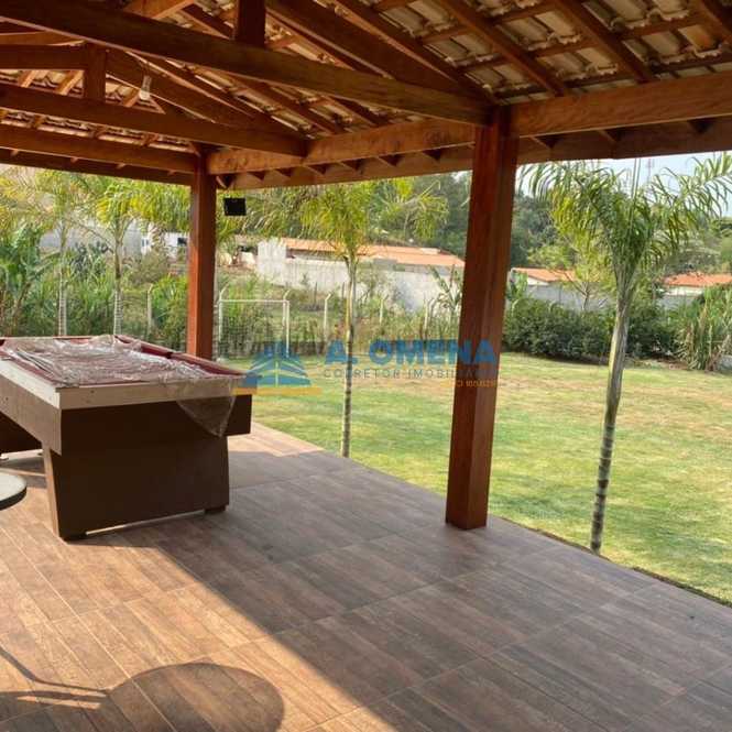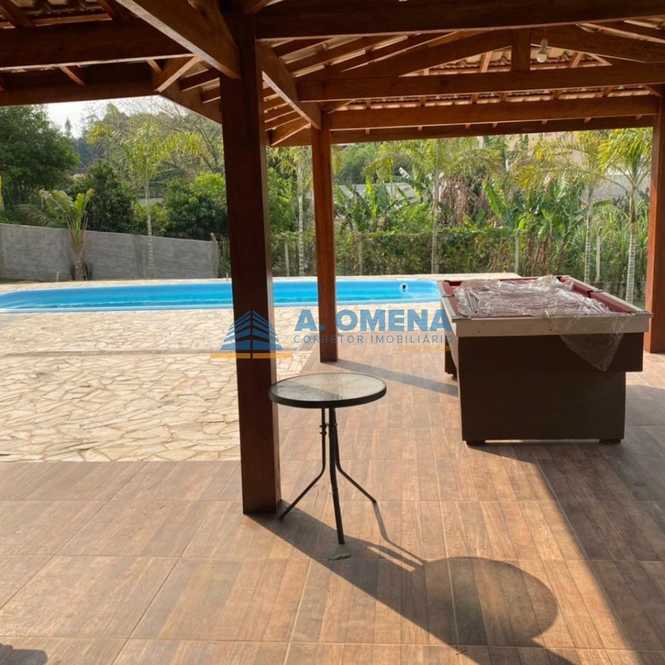 Linda chácara com mini campo de futebol, salão de festas com churrasqueira, piscina, edícula com 1 dormitório, sala de estar, cozinha e banheiro.