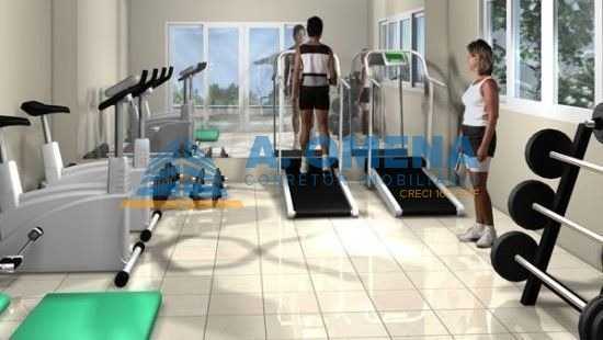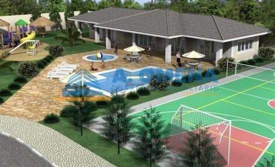 Condomínio com área de lazer completa com piscinas, quadra poliesportiva, playground, academia e salão de festas.