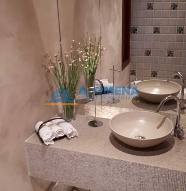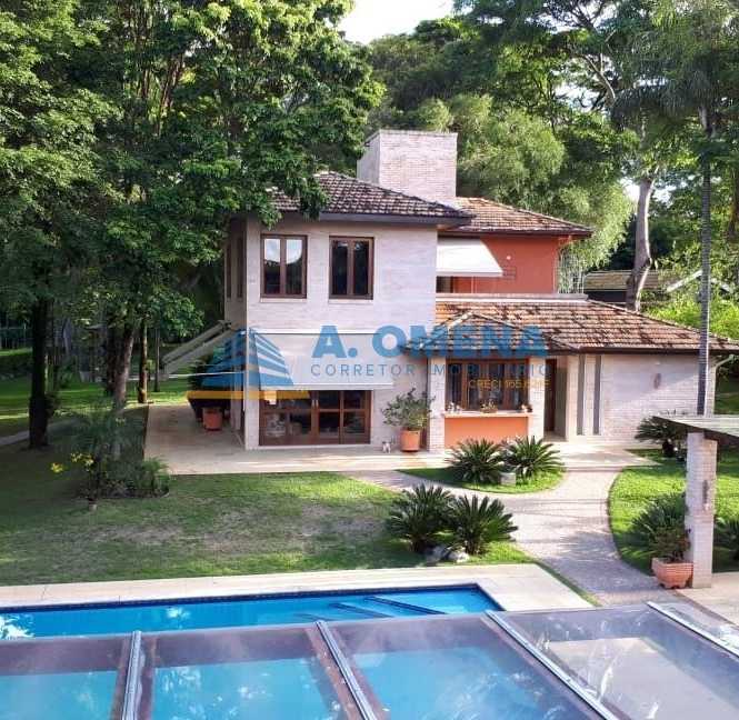 Magnífico imóvel em condomínio de alto padrão com 2 casas, sendo a casa principal com 516m², 4 suítes, a master com closet, as demais com armários planejados, living para vários ambientes, lareira, lavabo, mezanino com home theater, salas de jantar e de almoço, cozinha planejada, despensa, lavanderia com banheiro e quarto de despejo.