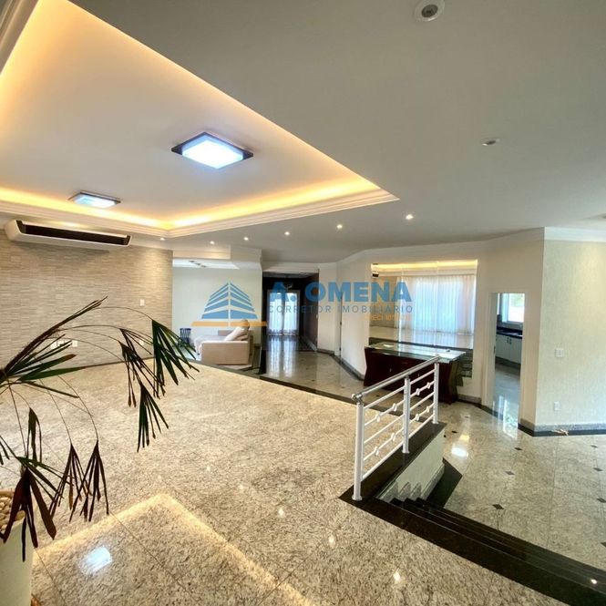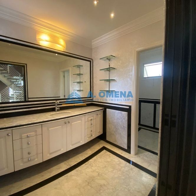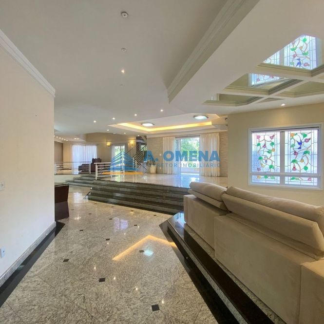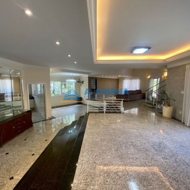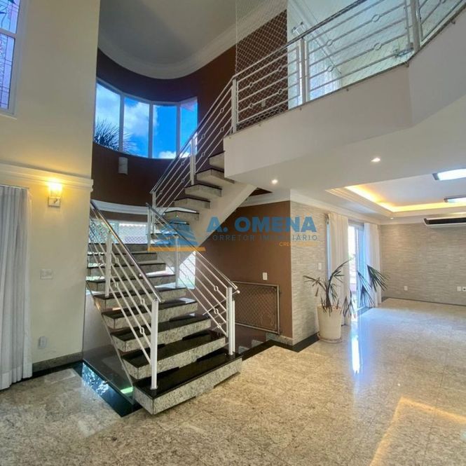 Belíssimo sobrado com 4 suítes, todas com closet e varanda, a master com hidromassagem. Hall de entrada com pé direito duplo, lavabo, salas de estar e jantar integradas, escritório com armários e banheiro completo, podendo ser transformado em suíte, solarium amplo com magnífica vista, cozinha planejada equipada com forno elétrico e fogão cooktop, despensa, lavanderia com armários.
